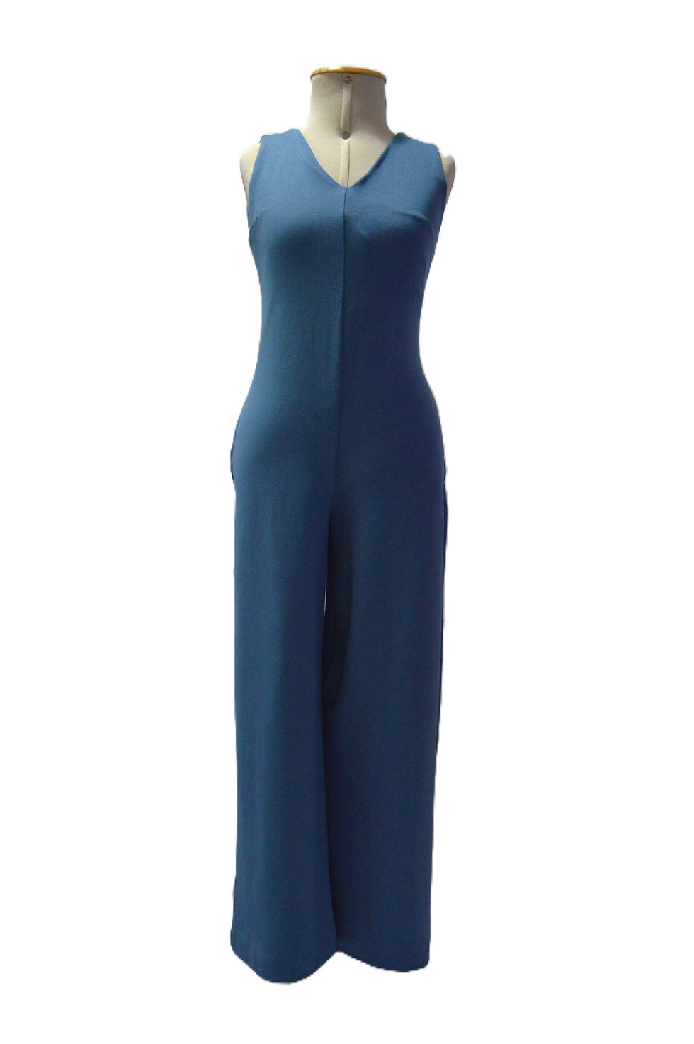 Modelagem: próximo ao corpo, estilo regata, pernas retas mais largas, decote em V na frente e nas costas, com faixa para amarração e parte superior forrada.